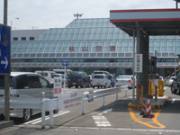 松山空港では、車の規制が以前よりものすごーく厳しくて、ロータリーの反対側で待つ車が目立っています。