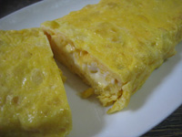 父さんも大好き。定番のオムライスです。1人分ずつ当然巻きますが、途中、長男も参戦して油を敷かずに大失態。鉄のフライパンの我が家では、テフロンのようにはいきません。