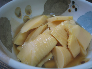 沢山採れるようになったら、炊いて味付けしたたけのこを天ぷらにするのです。