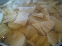 大鍋にたっぷりのたけのこです。何回茹でるを繰り返したことか・・・。