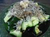 たたききゅうりとちりめんのにんにく酢醤油かけ