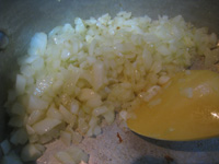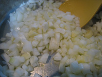 オリーブオイルでにんにくと玉葱をソテー。