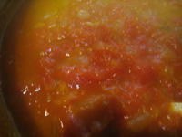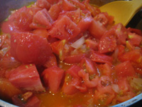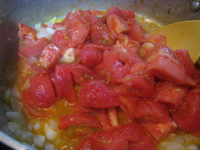 ざく切りにしたトマトを加えて炒めます。