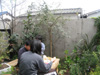 回りの土をよけて、穂先の向いている方向から根の向きを定めます。