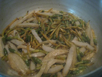 沢山の姫皮を残して。梅肉和えもいいけど、スープも○。