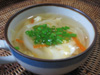 しっかりとったコンソメスープに、パン粉や卵を混ぜて・・・お手軽スープなのです。